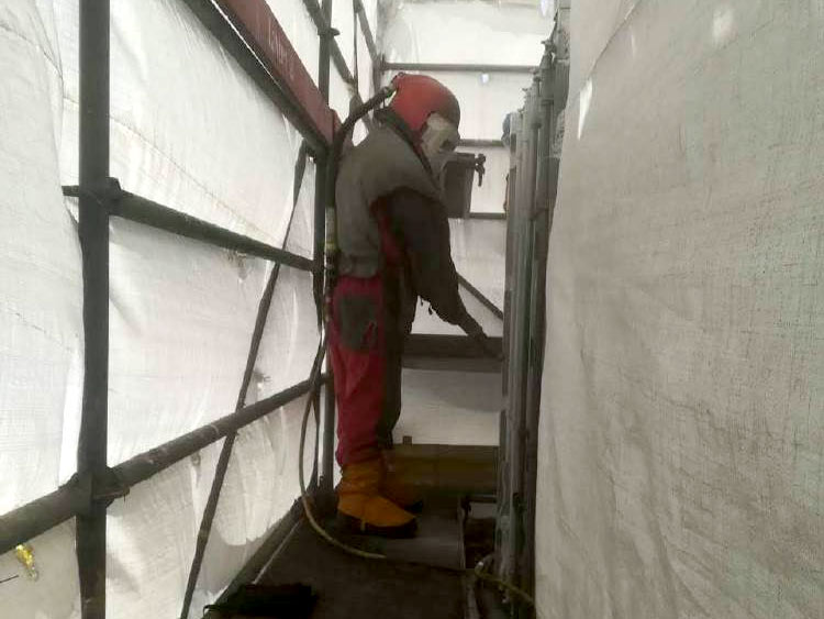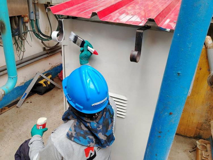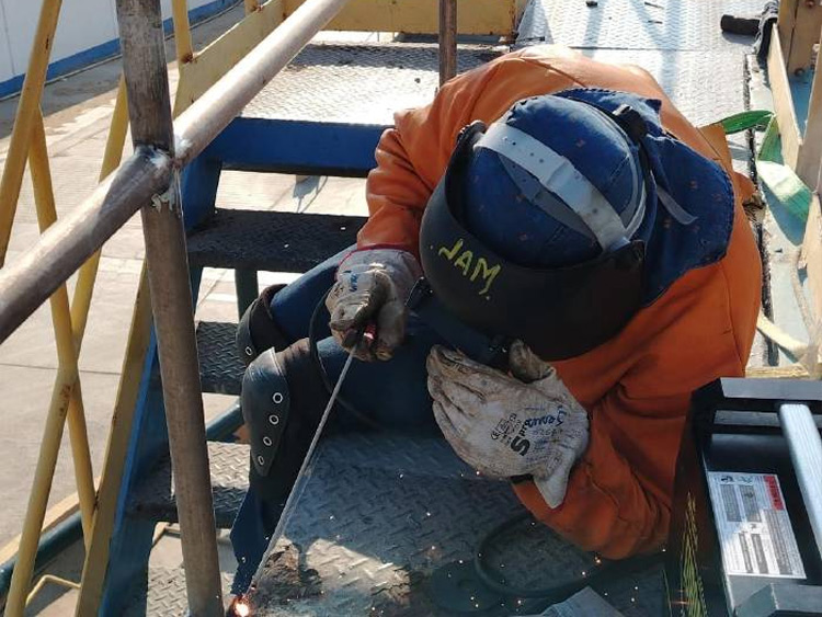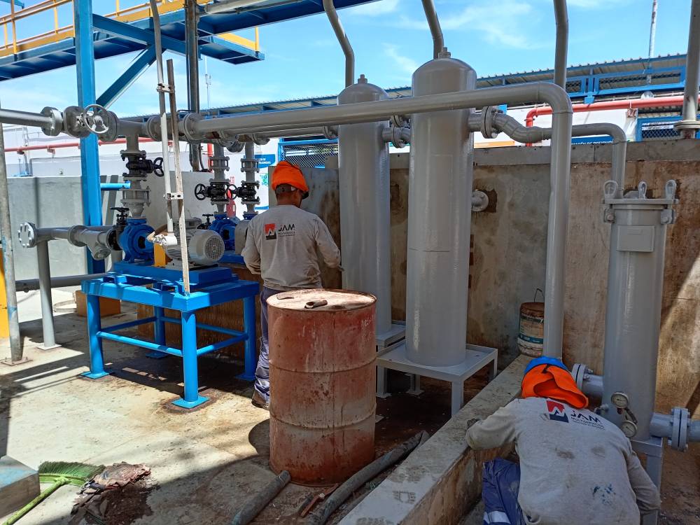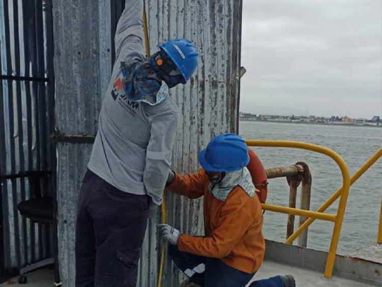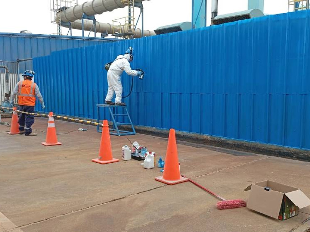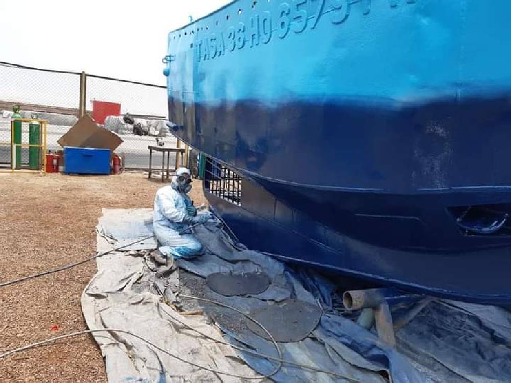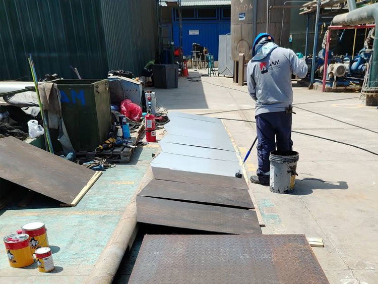 Pintado de estructuras metálicas, bombas y panga.