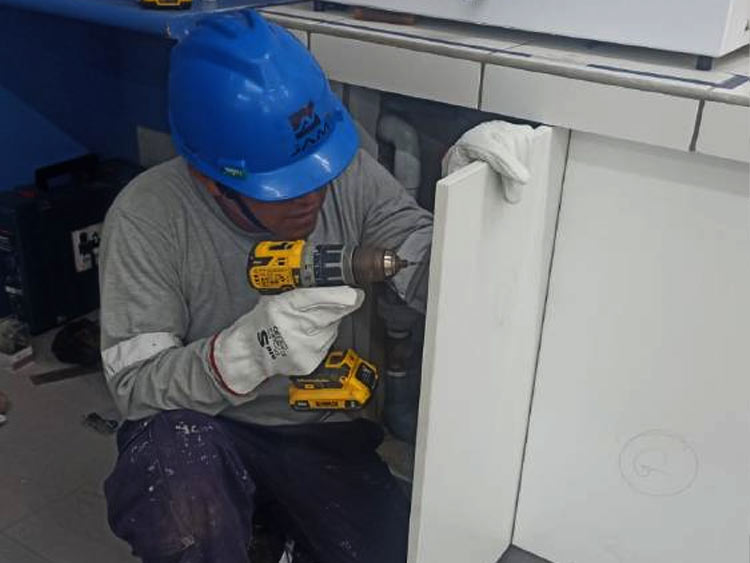 Instalación de puerta de melamine en laboratorio
