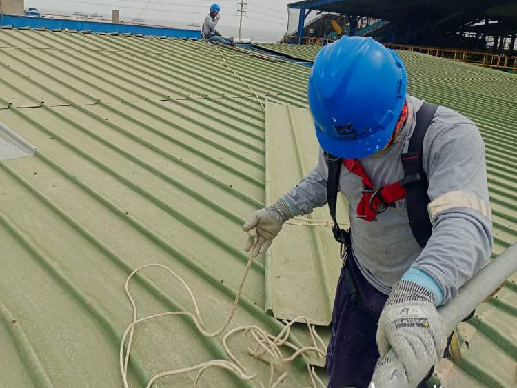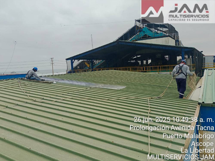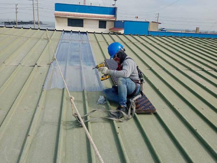 Instalación de cobertor TR4 en techo de almacén